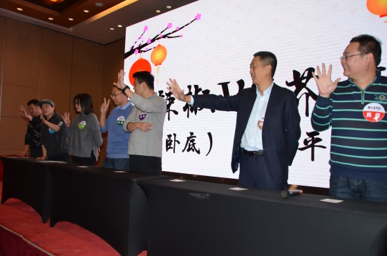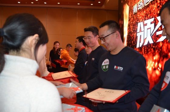 在全体欢乐活动之后,迎来了公司一年一度的重头戏,表彰优秀员工、销售冠军。为体现优秀传承,往届优秀员工代表为本届优秀员工进行了颁奖;本届优秀员工以一曲“明天会更好”表达了对公司的祝福。