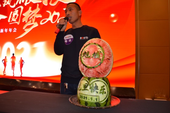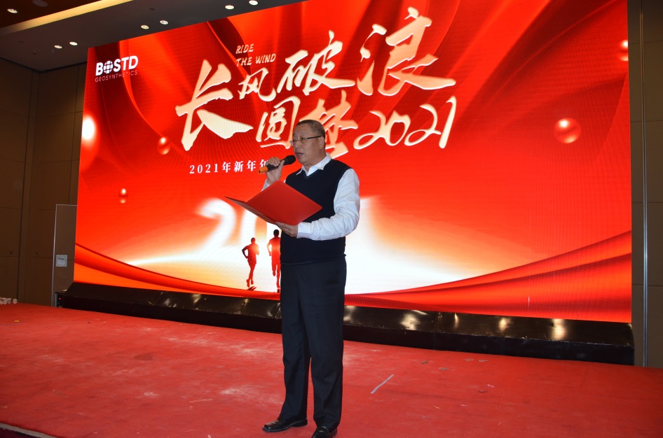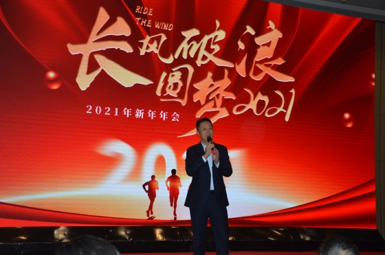 董事长杨宝和先生发表深情演讲,2021年是公司关键的一年,希望旭域人继续发扬自强不息的精神,以昂扬的斗志,团结拼搏,长风破浪,圆梦2021!